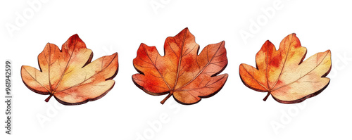 Fototapeta premium Three vibrant autumn leaves warm tones of orange and yellow, with transparent...