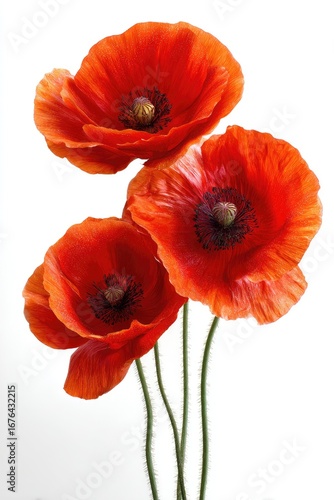 © Indira, Naklejka premium Three vibrant red poppies on a white background (1)