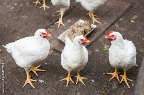 © Kishyru, Fototapeta premium Three white broiler chicken