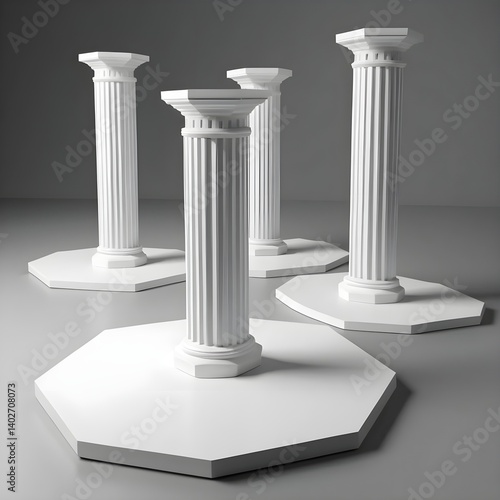 © Teeranan, Obraz premium Three White Classical Columns on Octagonal Bases