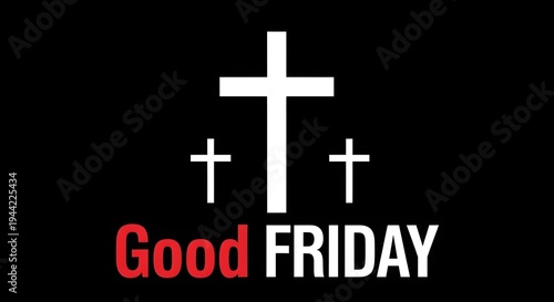 Fototapeta premium Three white crosses on black background with good friday text