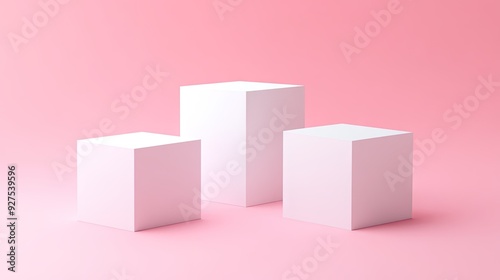 © arthit, Obraz premium Three white cubes on a gentle pink pastel background. Minimalist design ideal for product showcases and 3D rendering technical presentations.