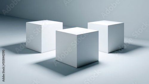 © Ajyad, Obraz premium Three white cubes on a light gray surface (3)