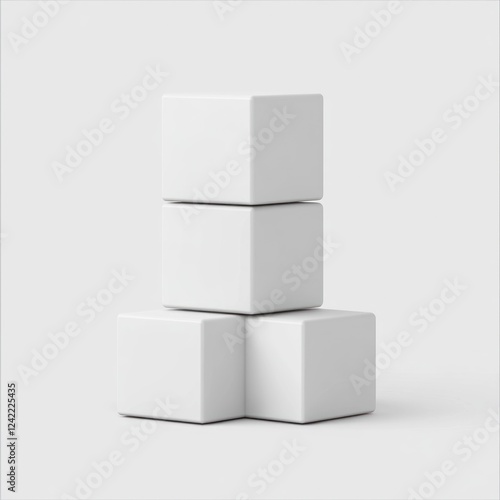 © Alfath, Obraz premium Three white cubes stacked, minimalist design.