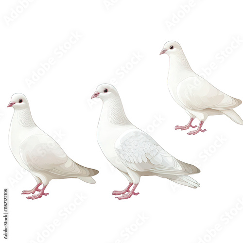 Obraz premium three white doves with pink feet standing in a row on a transparent background