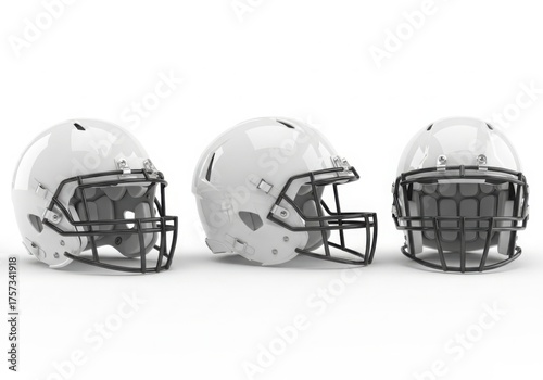 © png stock, Fototapeta premium Three white football helmets displayed from different angles