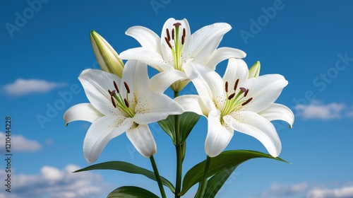 © PJ Gallery, Fototapeta premium Three White Lilies Against Blue Sky