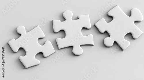 Obraz premium Three white puzzle pieces on a light background, symbolizing problem-solving...