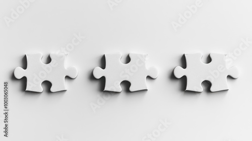 Obraz premium Three white puzzle pieces on a smooth surface, symbolizing connection and...
