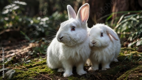© Saad, Fototapeta premium Three white rabbits animal PNG