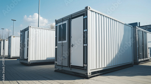 Naklejka premium Three white shipping containers are stacked on top of each other