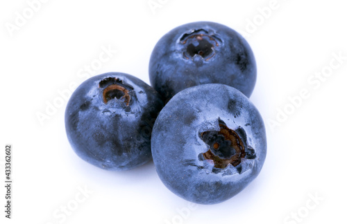 Obraz premium Three whole blueberries on a white background, isolated