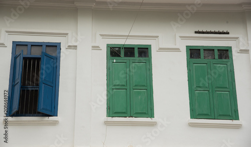 © vphinit, Fototapeta premium Three windows on a white ancient building