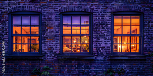 Fototapeta premium Three windows with light in the house