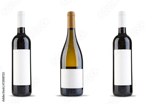 © Milos Tasic, Fototapeta premium Three wine bottle on white background
