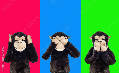 © neosiam, Obraz premium Three wise monkeys. See no evil, hear no evil, speak no evil cartoon monkeys