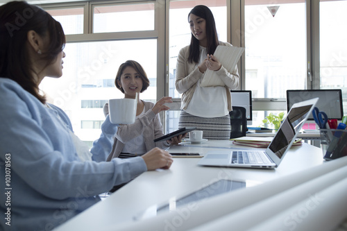 © Monet, Fototapeta premium Three women are talking in the office