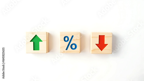 Obraz premium Three wooden blocks with arrows and percentage sign 1