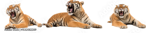 Naklejka premium Three Yawning Tiger Cubs: A Majestic Wildlife Moment on transparent background png