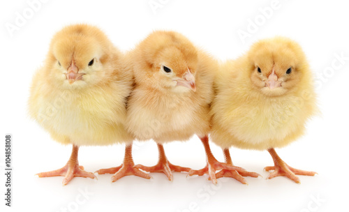 Fototapeta premium Three yellow chickens.