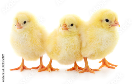 Fototapeta premium Three yellow chickens.