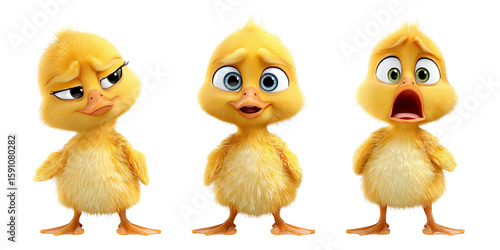 Fototapeta premium Three yellow chicks with different expressions