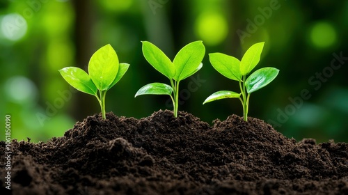 Naklejka premium Three Young Saplings Growing in Soil