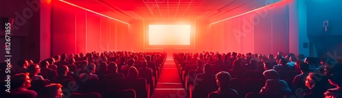 © Thares2020, Obraz premium Thrilling Cinema Premiere Draws Captivated Audience in Vibrant Red Lighting