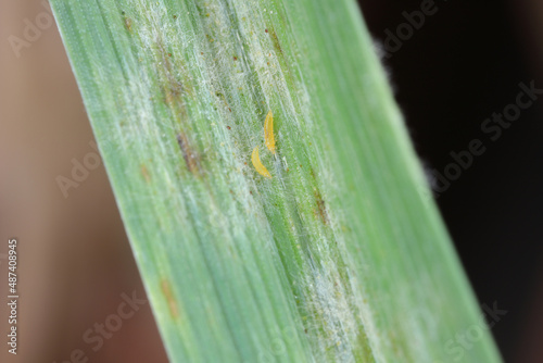 Obraz premium Thrips and powdery mildew on a cereal leaf.