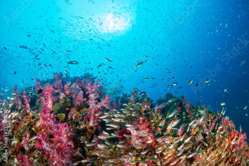 © whitcomberd, Fototapeta premium Thriving, colorful tropical coral reef, surrounded by tropical fish