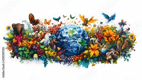 Naklejka premium Thriving Global Ecosystem with Vibrant Wildlife and Diverse Flora