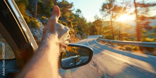 © Planetz, Naklejka premium Thumbs Up from the Road