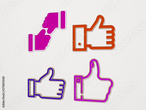 © Ali, Obraz premium THUMBS UP 4 icons set. 3D illustration. thumbs-up and background