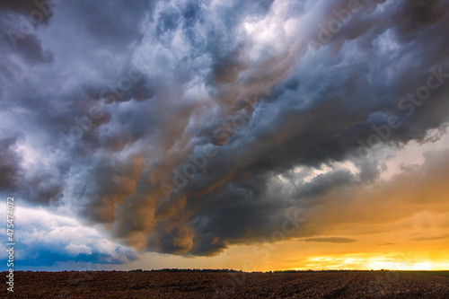 Naklejka premium Thunder storm with shelf cloud at sunset, summer, Lithuania