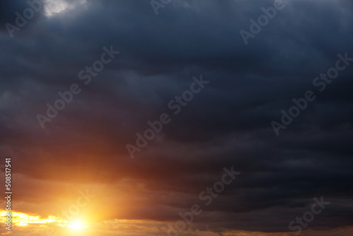 Fototapeta premium Thunderclouds with breaking rays sun at sunset.