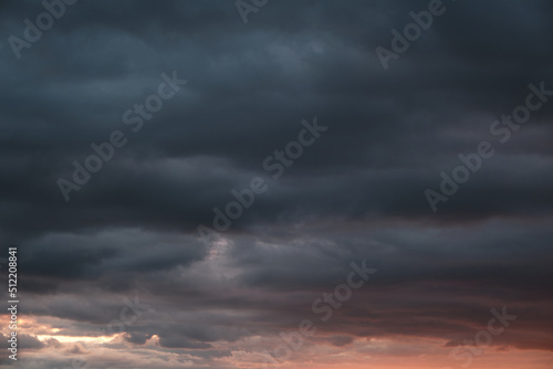Obraz premium Thunderstorm dramatic clouds during evening sunset.