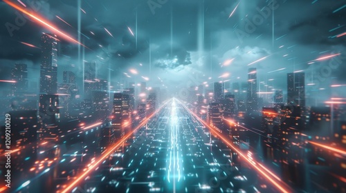 Obraz premium Thunderstorm reveals an abstract power in the sky. Lightning strikes,...