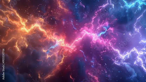 Obraz premium Thunderstorm reveals an abstract power in the sky. Lightning strikes,...