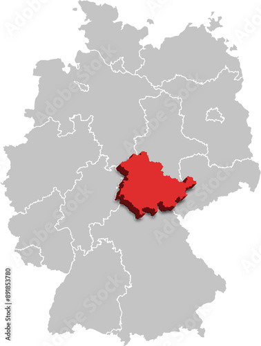 © WALDIR, Naklejka premium Thuringia MAP STATE OF GERMANY 3D ISOMETRIC MAP