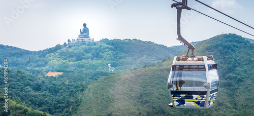 © joeyphoto, Obraz premium Tian Tan Buddha statue and cable car. Located at Ngong Ping, Lantau Island, in Hong Kong.