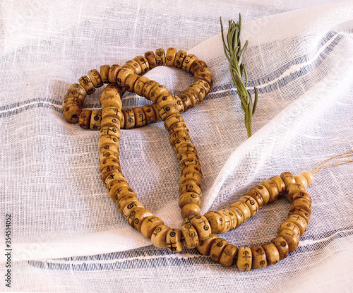Naklejka premium Tibetan Buddhist rosary, called mala or japamala