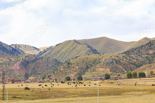 © xiefei, Fototapeta premium tibetan house beside the mountain