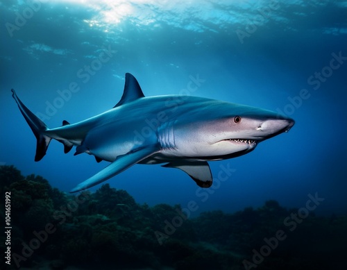 © Argiduna, Obraz premium Tiburón blanco azul el mar, Realista