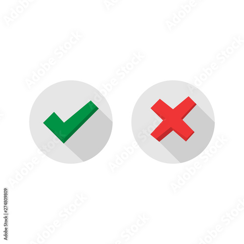 © Matias, Fototapeta premium Tick and cross signs. Green checkmark and red X icons