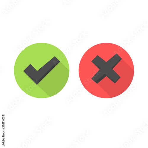 Fototapeta premium Tick and cross signs. Green checkmark and red X icons