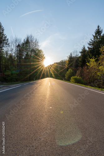 Obraz premium Tiefstehende Abendsonne über Landstraße