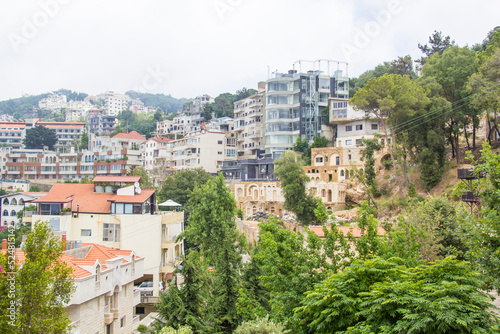 Fototapeta premium tiful view of the funicular at the resort town of Jounieh from Mount Harisa,...