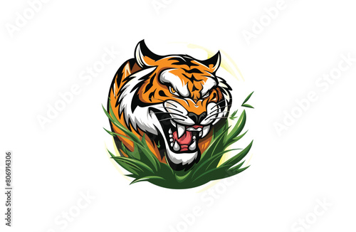 © Nana, Obraz premium Tiger and Grass vector illustration flat design logo