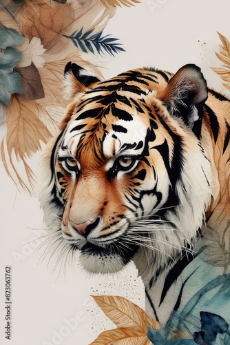 © elena_hramowa, Fototapeta premium Tiger art poster, illustration design in painting style.