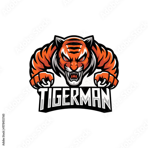 © Zyram Graphic, Obraz premium tiger attacking pose with claws design illustration logo with text